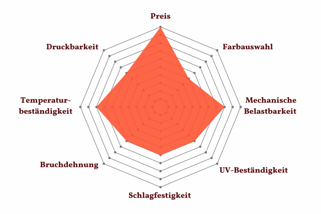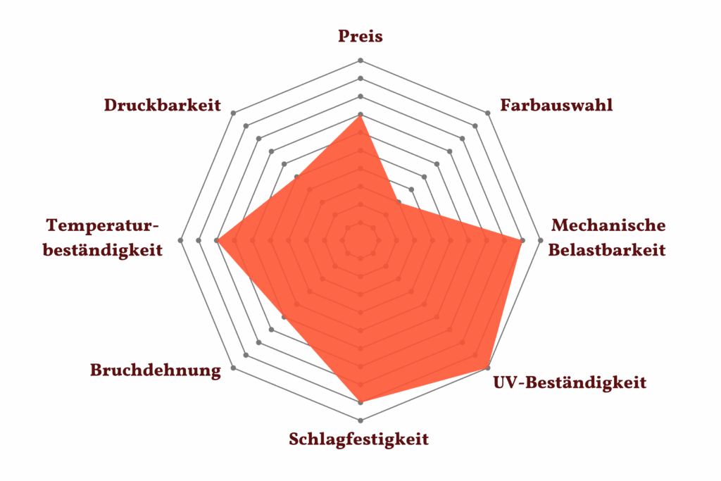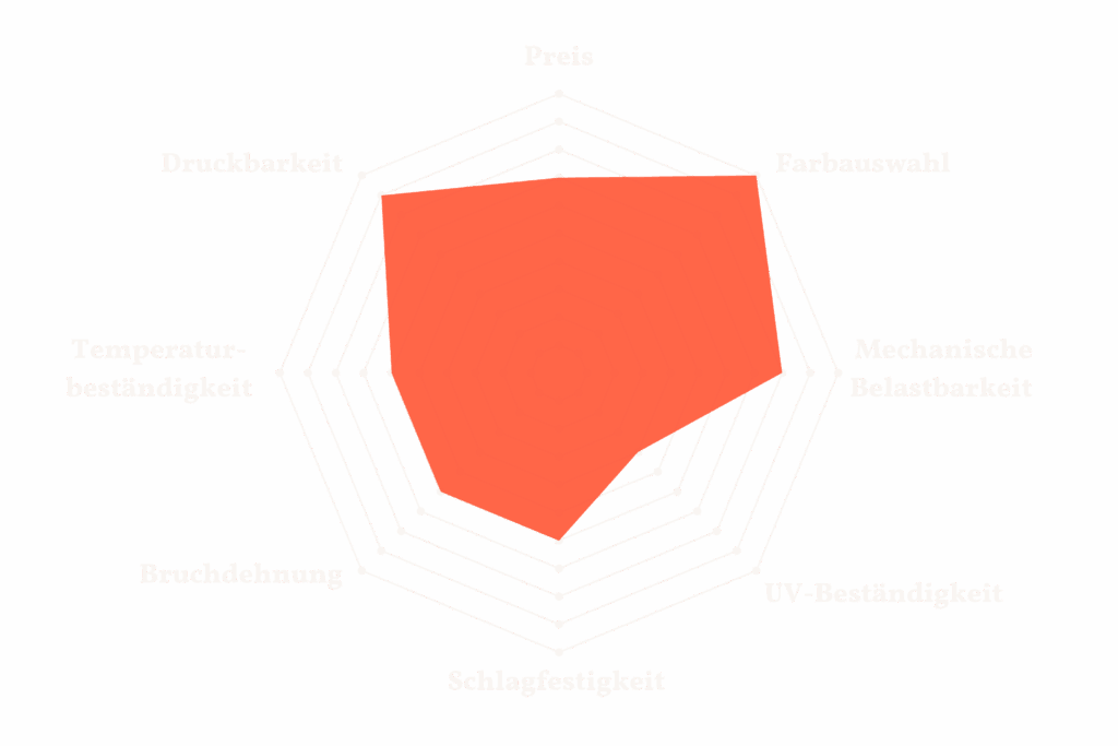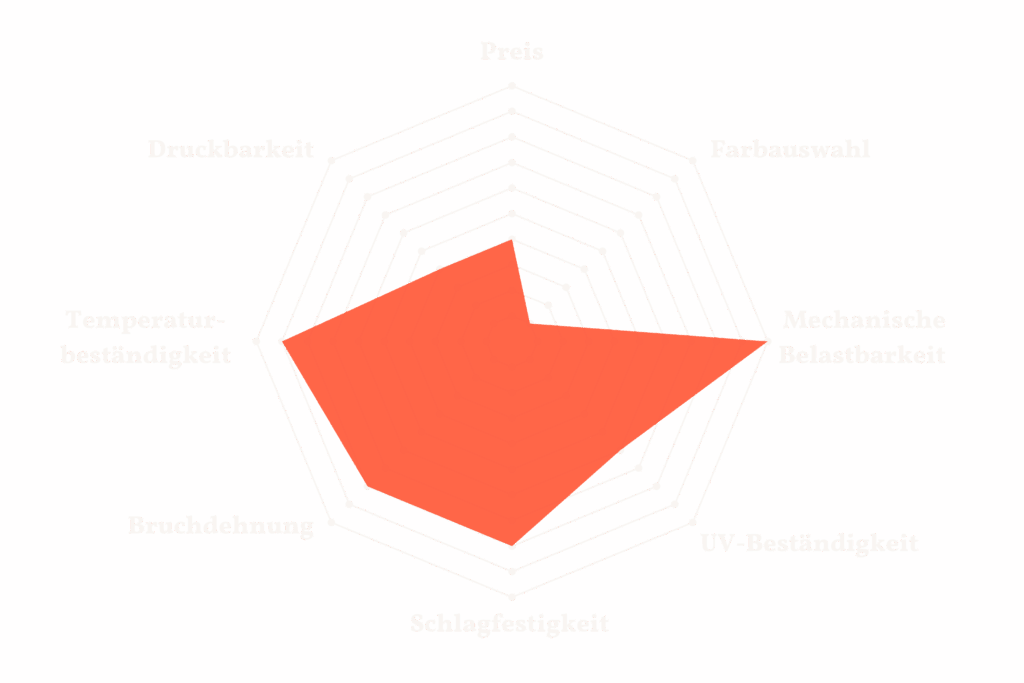 ASA ist eine moderne Alternative zu ABS und besonders für den Außeneinsatz geeignet. Es bietet eine hohe Beständigkeit gegen UV-Strahlung und Witterungseinflüsse, was es zum Material der Wahl für langlebige Outdoor-Bauteile macht.